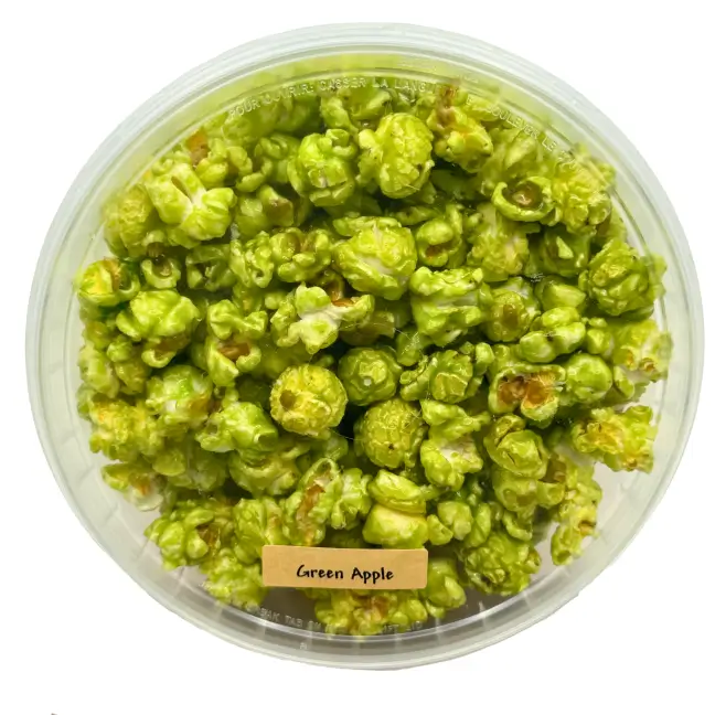 Experience the crisp and tangy flavor of Green Apple Popcorn! Gourmet popcorn with a refreshing green apple glaze, perfect for snacking and special occasions.